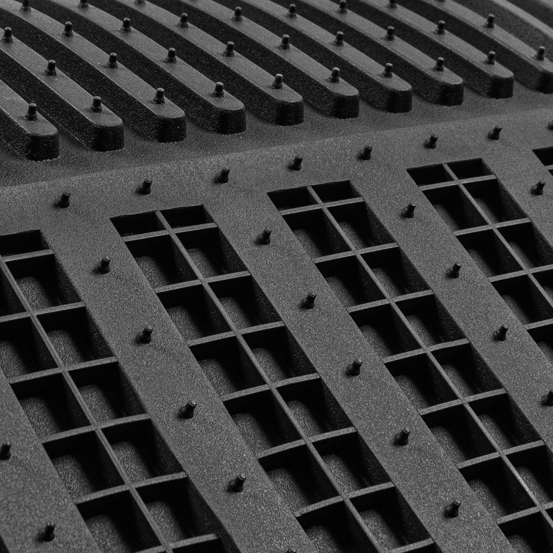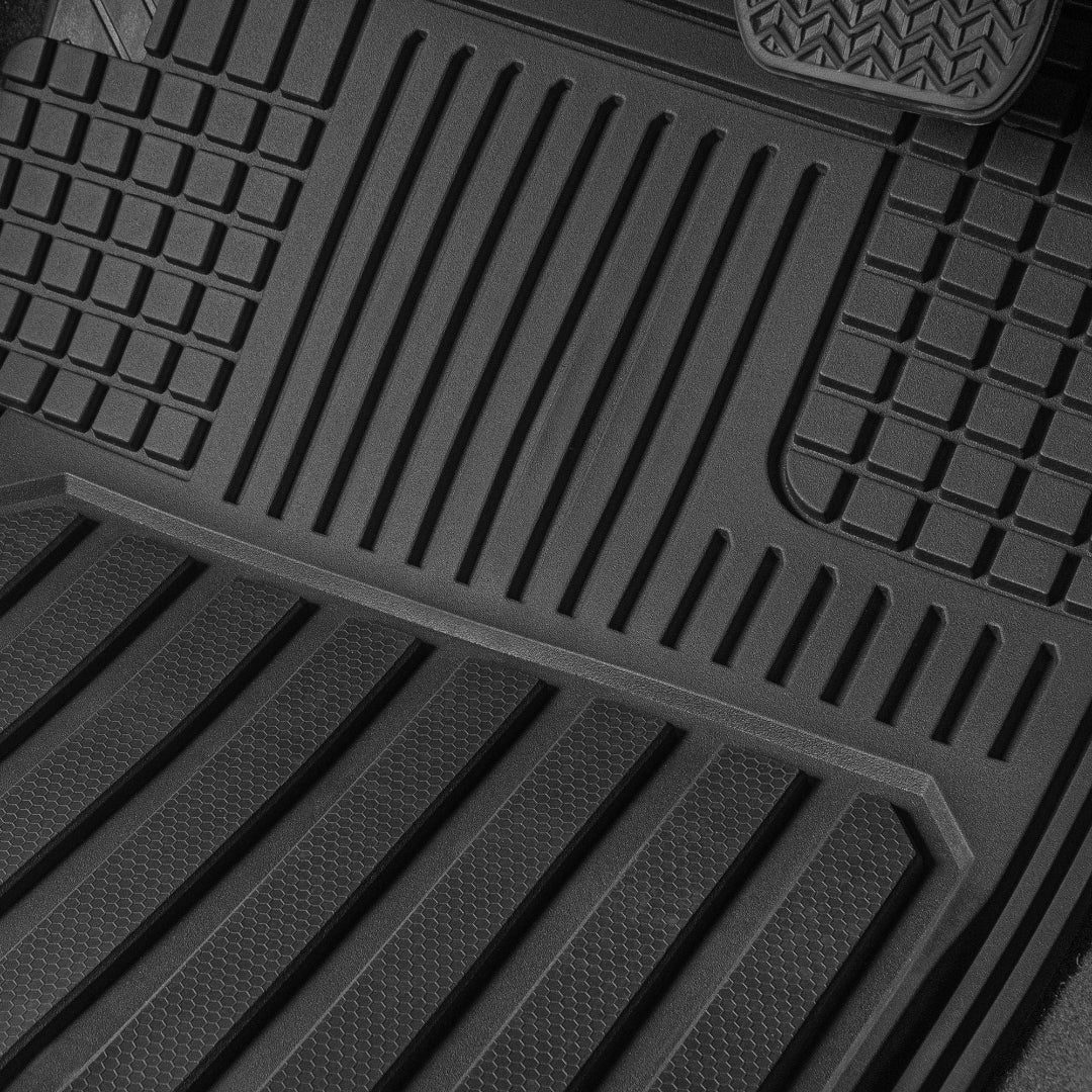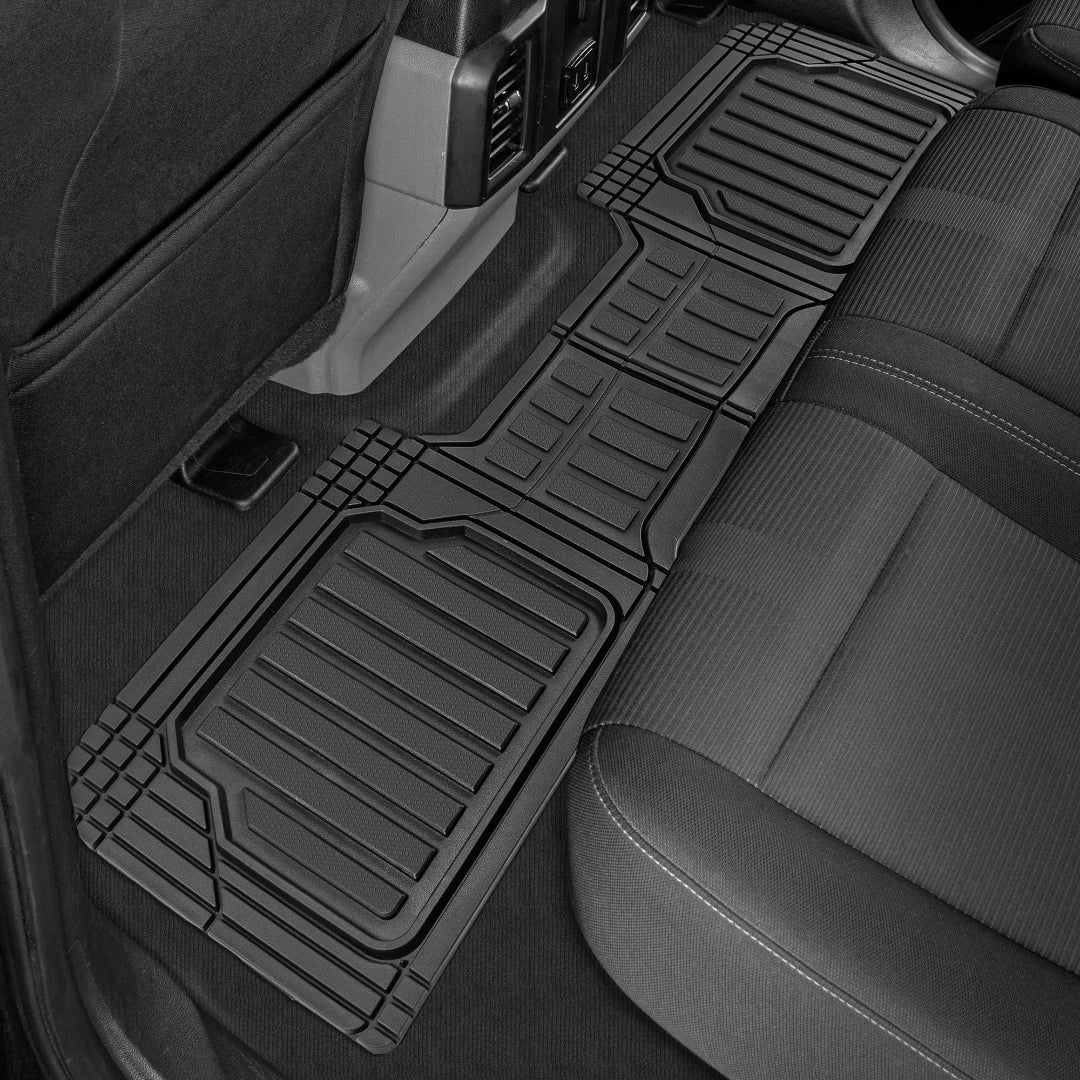 صُممت هذه السجادات من حيث الشكل والحجم لتناسب معظم السيارات والشاحنات والشاحنات الصغيرة وسيارات الدفع الرباعي. صُممت لتتناسب مع منحنيات أرضية سيارتك بمقص فقط. لا داعي لإرهاق ظهرك بحشو السجادات لمجرد ملاءمتها. ما عليك سوى قص الخطوط حتى تجد المقاس المثالي. تتميز هذه السجادات بتصميم فريد، خطي وقطري، موزعة بشكل استراتيجي داخل الصفيحة العميقة لتعزيز قدرتها على احتجاز الماء والثلج والطين والحطام، ولن تتسرب من خلالها إلى داخل السيارة. أبعاد المنتج (الأمامي: ٤٤.٥ سم × ٧١.١ سم / الخلفي: ١٣٧.٢ سم × ٣٥.٥ سم).