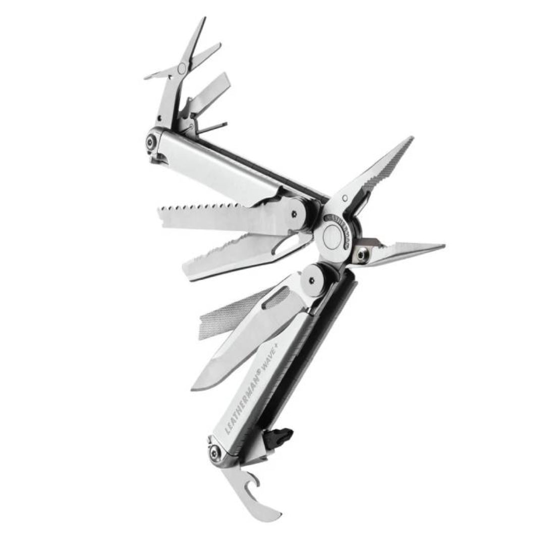 يُعدّ Wave+ من أكثر المنتجات مبيعًا عالميًا، فهو يضم جميع الأدوات الأساسية للنسخة الأصلية بالإضافة إلى قواطع أسلاك متينة وقابلة للاستبدال. يمكن فتح جميع الأدوات الـ 18 وقفلها بسرعة وسهولة لإنجاز أي مهمة. يُمكن الوصول إلى العديد من هذه الأدوات من الخارج، مما يسمح باستخدامها حتى عند طي الأداة وإغلاقها. يتضمن مشبك جيب قابل للإزالة.