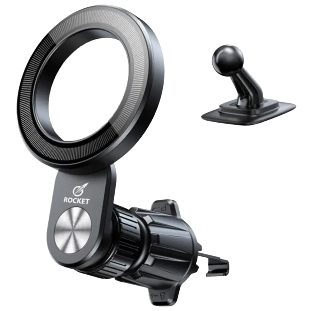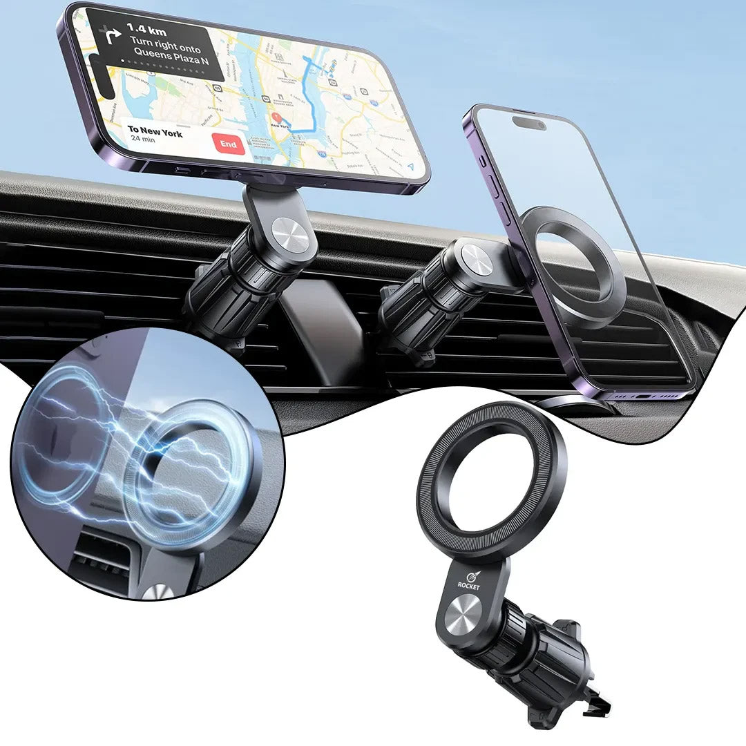 يوفر هذا الحامل خيارات تركيب مزدوجة للوحة القيادة أو فتحة مكيف الهواء، مما يضمن ثباتاً قوياً بفضل قاعدتي الشفط والمشبك المرفقتين. كما يتميز بخاصية الدوران الكامل بزاوية ٣٦٠ درجة، مما يتيح ضبط زاوية الرؤية المثالية لضمان قيادة آمنة ومريحة.