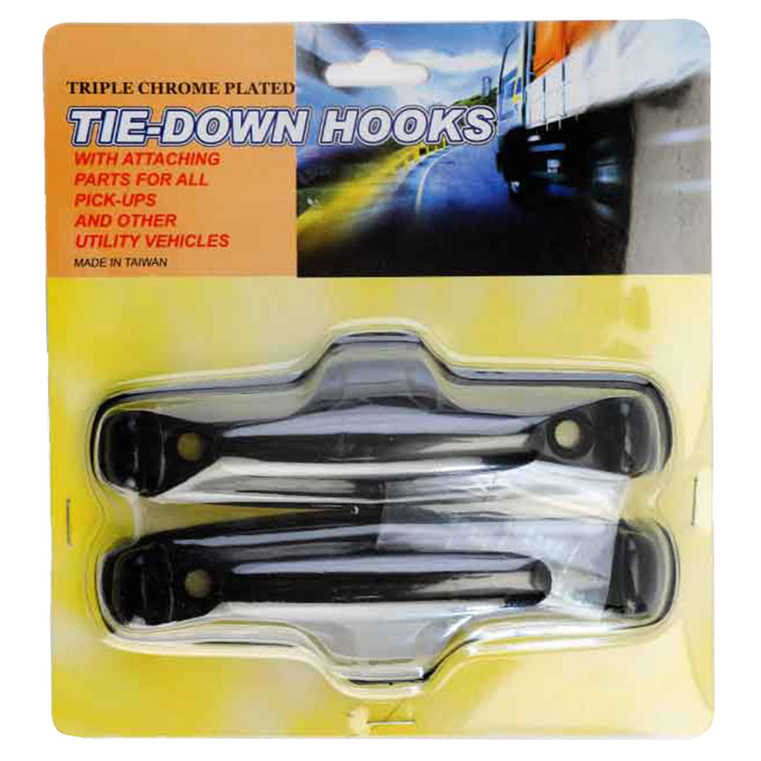 هذه الخطافات متينة ومصنوعة من المعدن المطلي بالكروم لضمان مقاومة الصدأ وتحمل الأحمال الثقيلة عند نقل البضائع. يتم تركيبها بسهولة في سرير الشاحنات أو المركبات الأخرى باستخدام المسامير والصواميل المرفقة، وهي توفر نقاط ربط آمنة.