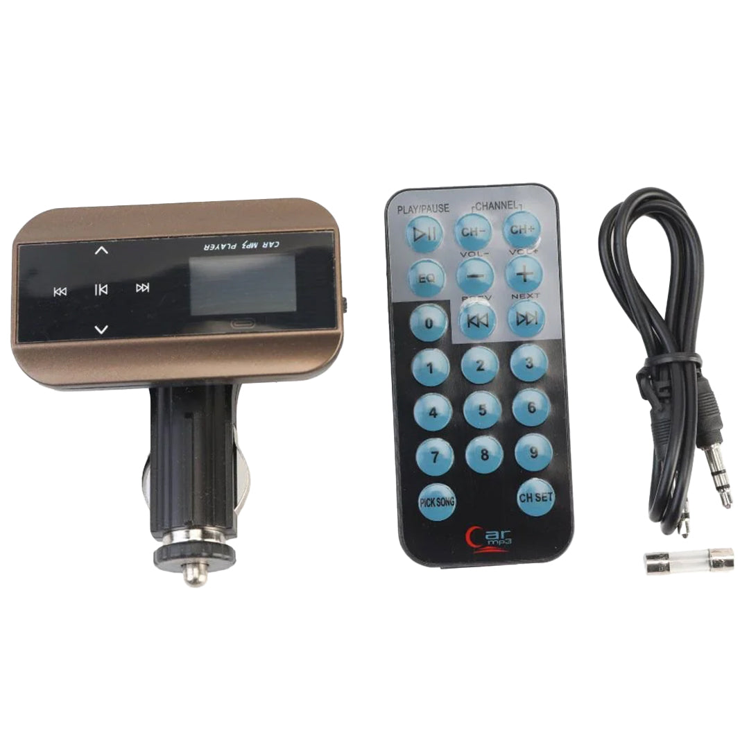 يحتوي ملحق السيارة هذا على جهاز إرسال إف إم مدمج ووحدة تحكم عن بعد بالأشعة تحت الحمراء للتحكم السهل. يتيح لك تشغيل ملفات إم بي ثري الصوتية مباشرة من قرص يو إس بي أو بطاقة الذاكرة عبر نظام ستيريو سيارتك، ويتضمن شاشة عرض لإظهار معلومات الموسيقى والتردد.
