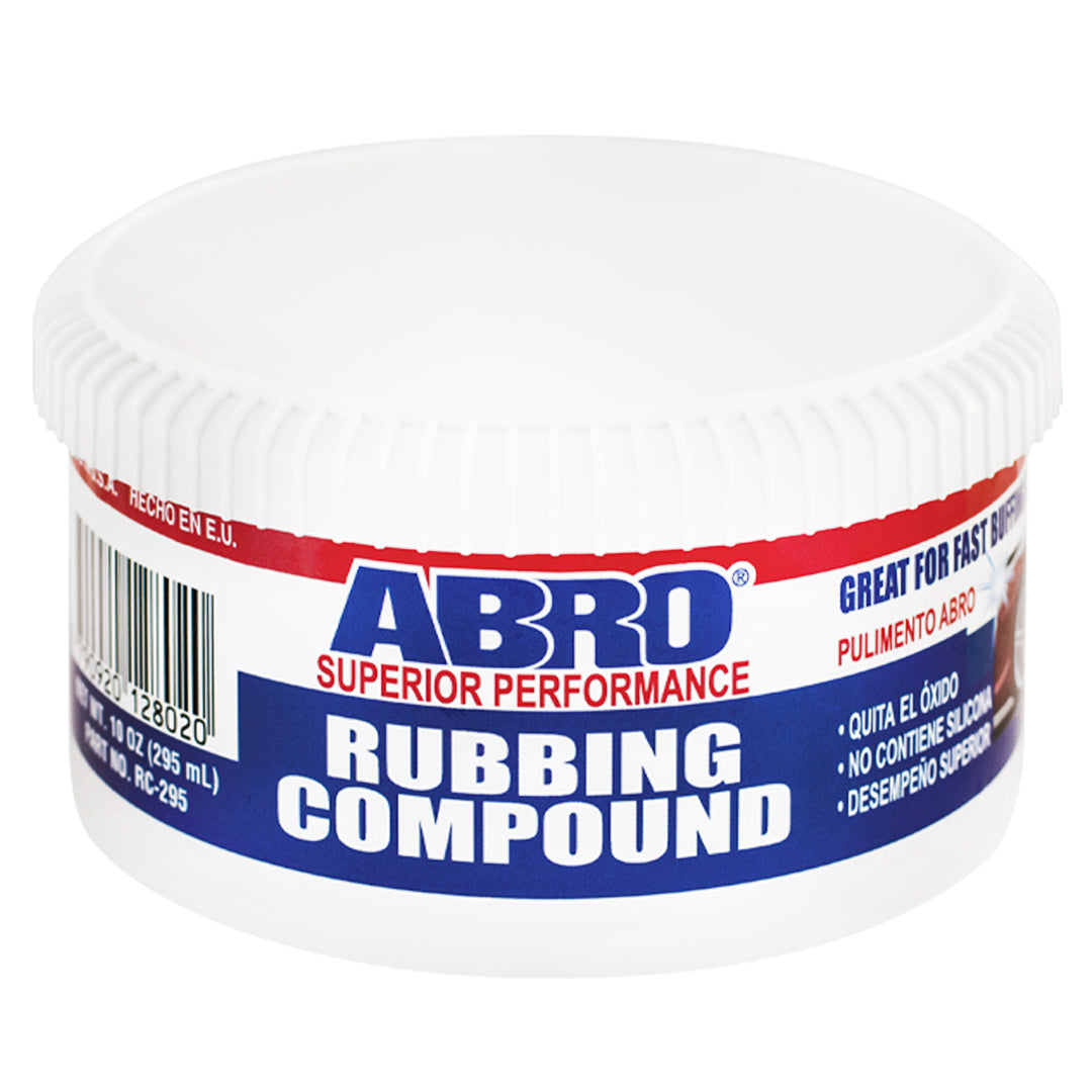 Abro Rubbing Compound 295Ml – 10Oz is a fine-cut polishing paste designed to remove light scratches, oxidation, and stubborn stains from automotive paint. It cleans and refurbishes dull or weathered finishes, restoring color depth and a smooth, glossy surface. The creamy formula is easy to apply and wipe off by hand or machine, making it suitable for both professional detailers and DIY users.