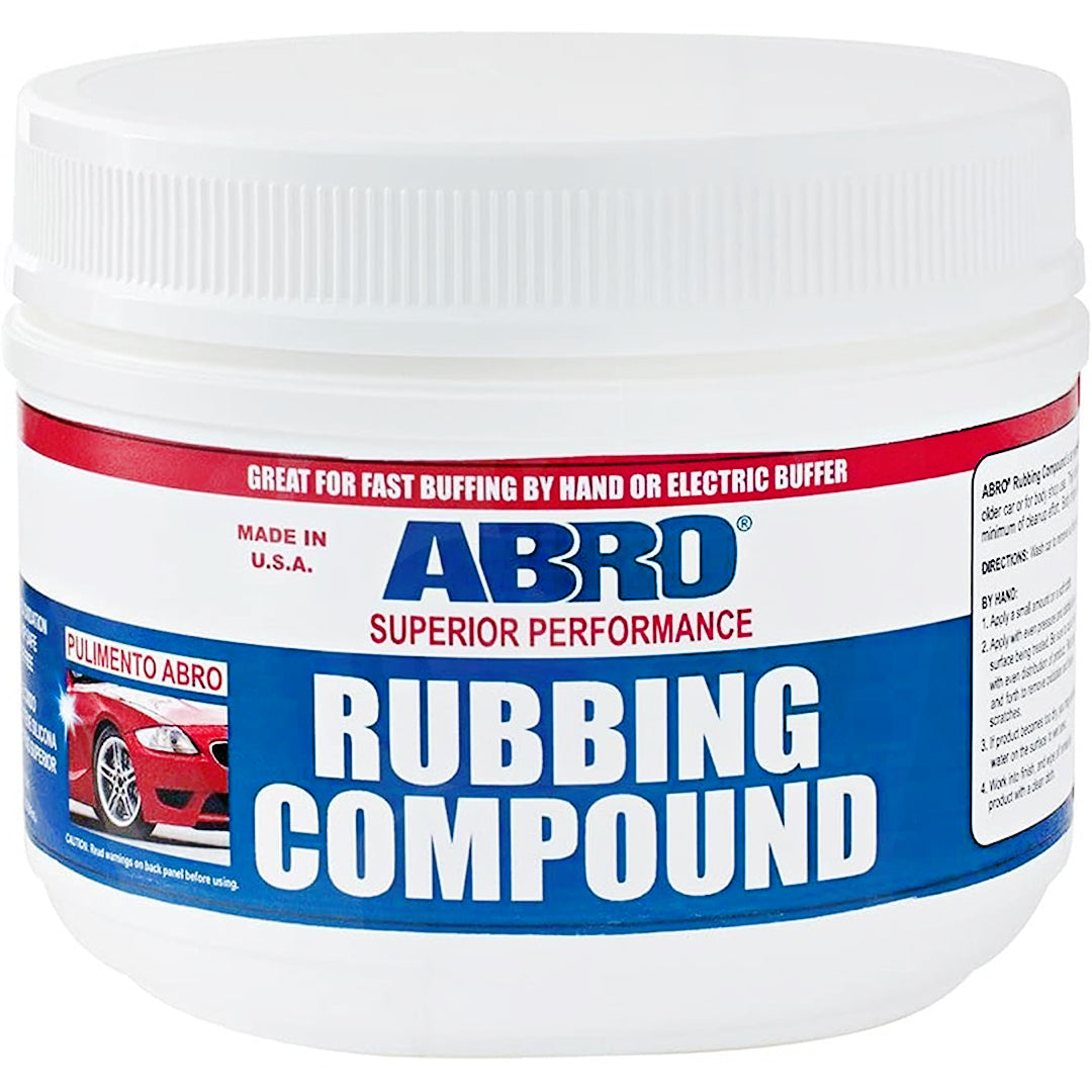 Abro Rubbing Compound 947Ml - 32Oz is a heavy-duty polishing compound designed to remove oxidation, water spots, and medium scratches from automotive paint. It restores color depth and gloss by carefully leveling the surface, making it ideal as a correction step before applying wax or sealant. The large 32‑ounce bottle is suitable for both professional detailers and enthusiasts who need enough product for multiple vehicles.