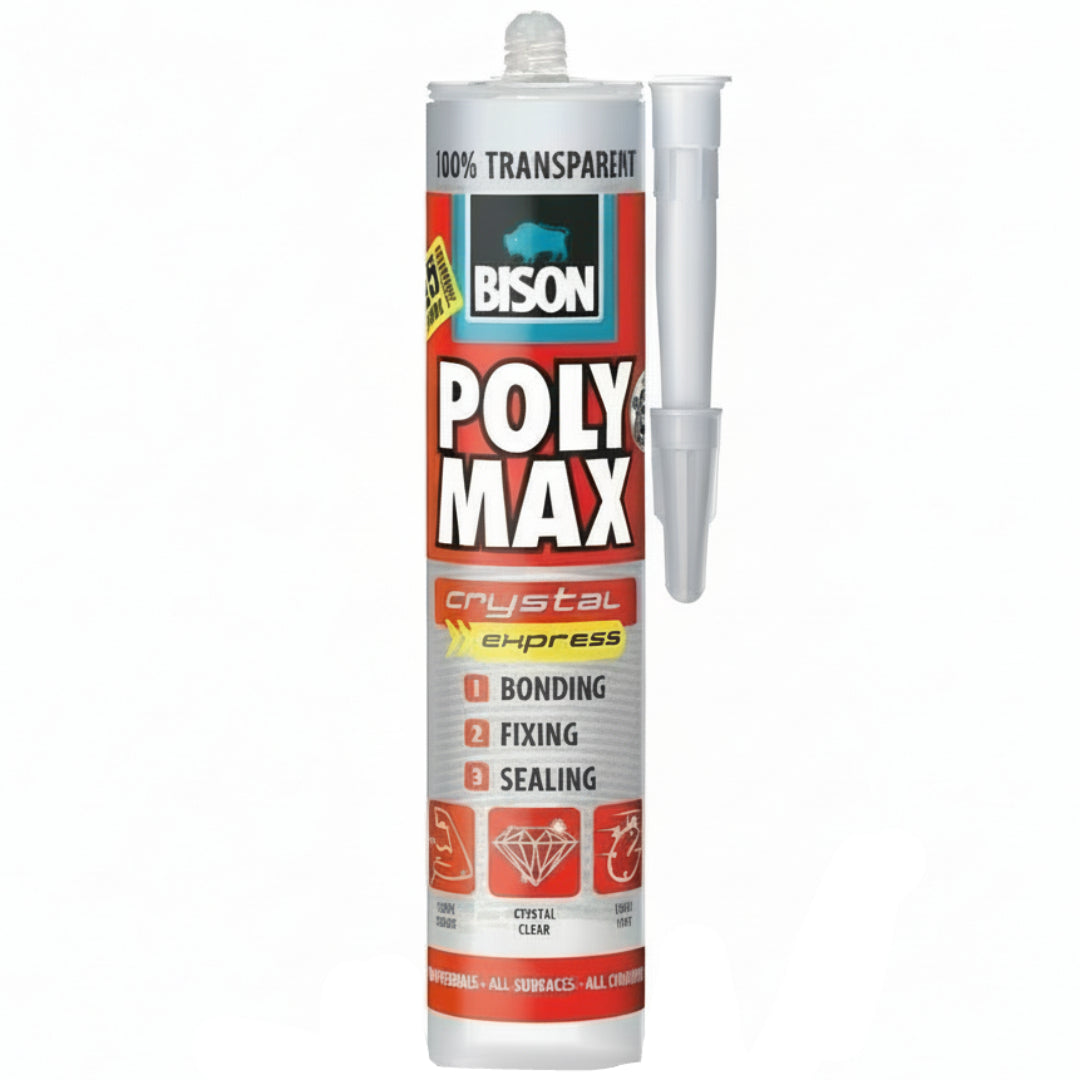 Bison Poly Max High Tack Express Cartridge 300 g is a fast-acting, high-performance adhesive with very high initial and final bond strength, suitable for both indoor and outdoor use. It bonds to slightly damp surfaces without primer, is permanently elastic, and resistant to temperatures from -40 °C to +100 °C, UV, water, and all weather conditions. Acid-free, odorless, and 100% adhesive, it ensures strong, durable, and reliable bonding for a wide range of materials.