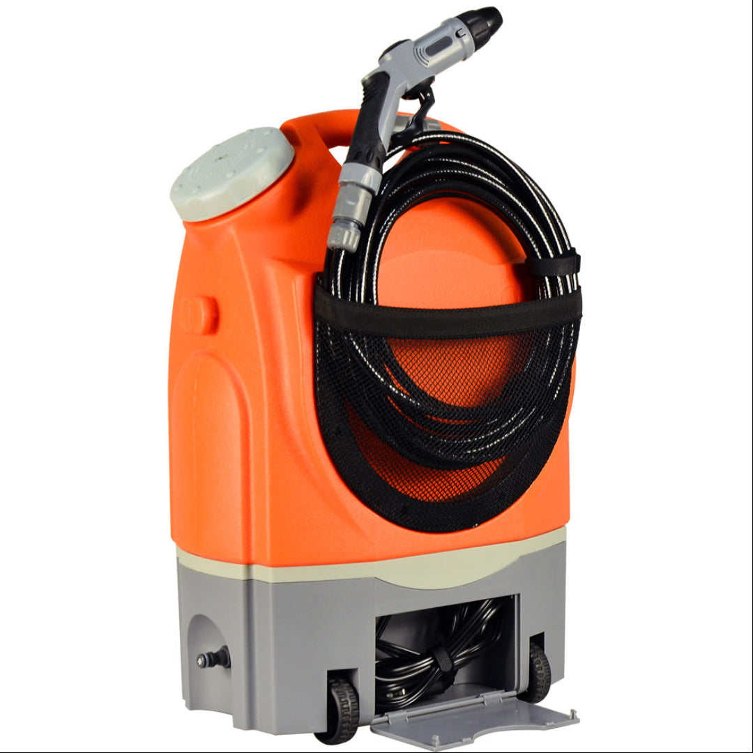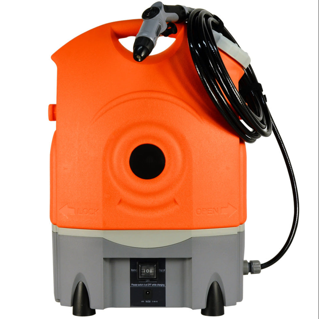 Made of pure material (PP) having durable construction. Store fresh water with 17L (4 gallon) of water tank. Removable water tank. Cordless power supply from rechargeable battery. Wheels and belt for easy carrying. Water flow which mode is up to 10, 000 times/min high frequency vibration. Mesh accessories pocket. Easy in operation and save in use. Perfect for camping, boating, fishing and do all the ideal cleaning.