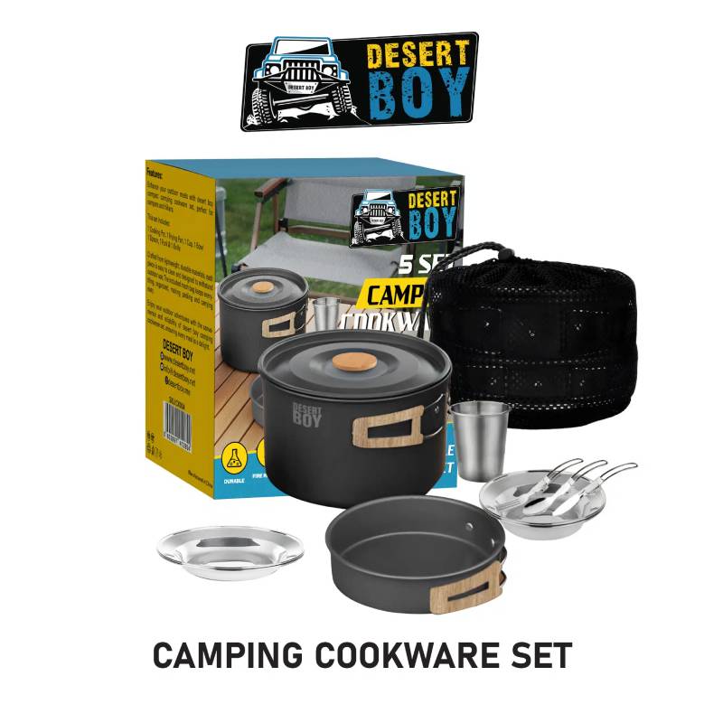 Desert Boy Camping Cookware Set �������� Crafted for the adventurous spirit, this versatile cookware set has everything you need for outdoor cooking. Featuring durable, lightweight pots, pans, and utensils, it��������s designed for easy packing and portability. Non-stick surfaces ensure effortless cooking and cleaning, while the heat-resistant handles provide a safe grip. Perfect for camping, hiking, and backpacking, the Desert Boy set lets you enjoy gourmet meals in the great outdoors. Take your campfire cooking to the next level with reliable and compact cookware that��������s built to last