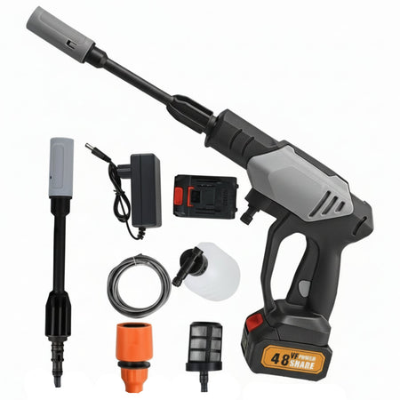 Cordless and rechargeable 48V pressure washer gun delivering up to 120 bar water pressure for powerful and efficient cleaning. Lightweight, ergonomic, and easy to use with adjustable pressure and multiple spray nozzles. Long-lasting battery, compact design, and compatible with water tanks, making it ideal for car washing and various home cleaning tasks—anytime, anywhere.