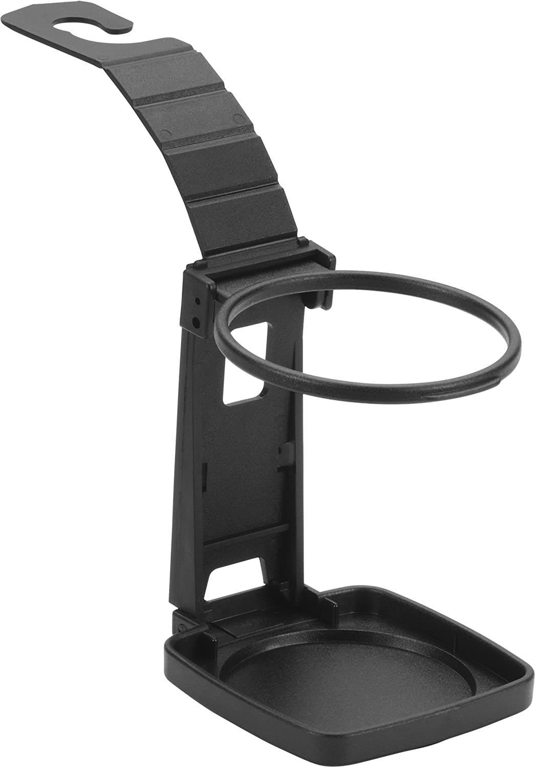 Unobtrusive, foldable cup holders for cans and bottles from 0.25 to 0.5 liters. Perfect for traveling. A mounting for side windows, glove compartments, or on the headrest stay. Also suitable for prams, garden chairs, etc. Can be conveniently stored in the glove box or in the door storage. Quick and easy mounting by the hook. Foldable cup holder for all cans & bottles from 0.25 ltr. up to 0.5 ltr. and is also suitable for slim bottles. Easy to install. You can clamp the holder to a side window or hook it into the bars of the headrest. With its foldable design, it can be perfectly stored on the door shelf or in the glove compartment. Designed and made in Germany with 5 years warranty.