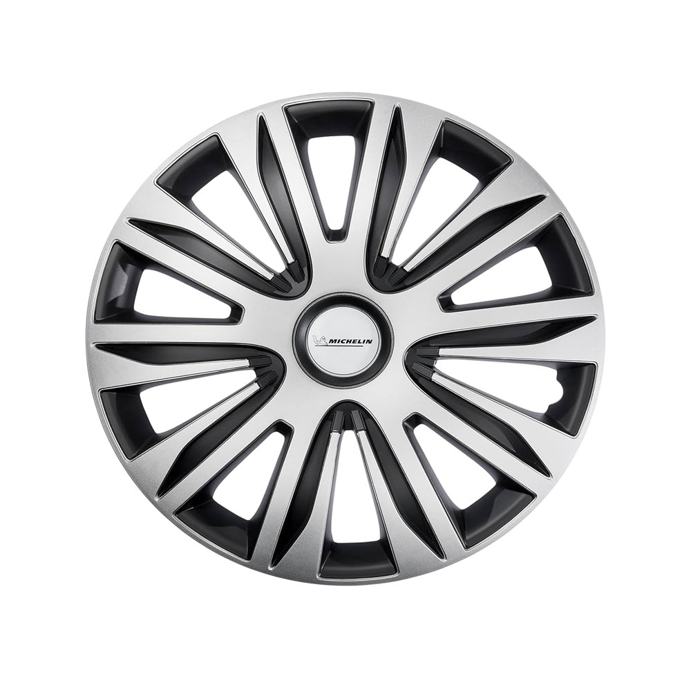 MICHELIN Cosmo Silver Black are high-quality caps from a world-famous company. Production facilities meet high European quality standards. High-tech equipment at the laboratories and the development department ensure the constant growth of the product range and expand the choice of models and colors of car cap. Michelin Cosmo Silver Black car caps are made of high-quality raw materials.The overall dimensions exactly correspond to a disk of a certain radius. For tight installation on the rim of the car wheel and reliable fixation, the set includes a retaining ring. It is made of elastic steel, ensures a tight fixation on the disk and prevents it from jumping off under mechanical influences. Michelin car caps can be washed under pressure without worrying about peeling paint. The plastic from which Michelin caps are made is resistant to sudden changes in ambient temperature. It does not become brittle in severe frost, which extends its service life.