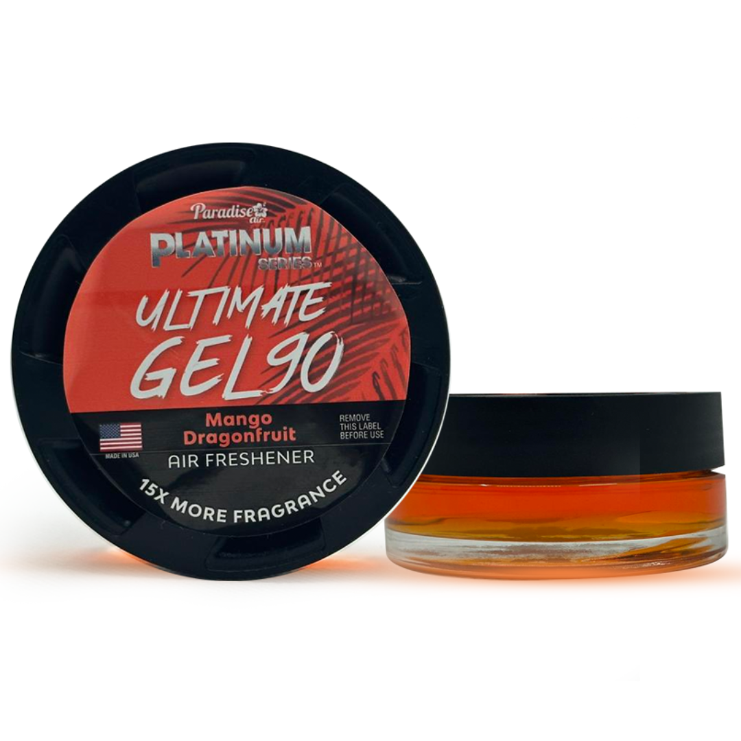 Keep your car smelling fresh with the Platinum Series Ultimate Gel90. This compact gel air freshener slowly releases a steady, long-lasting fragrance, giving your space a clean and pleasant atmosphere. Easy to place anywhere in the car, it’s mess-free, simple to use, and perfect for everyday freshness.