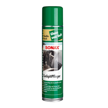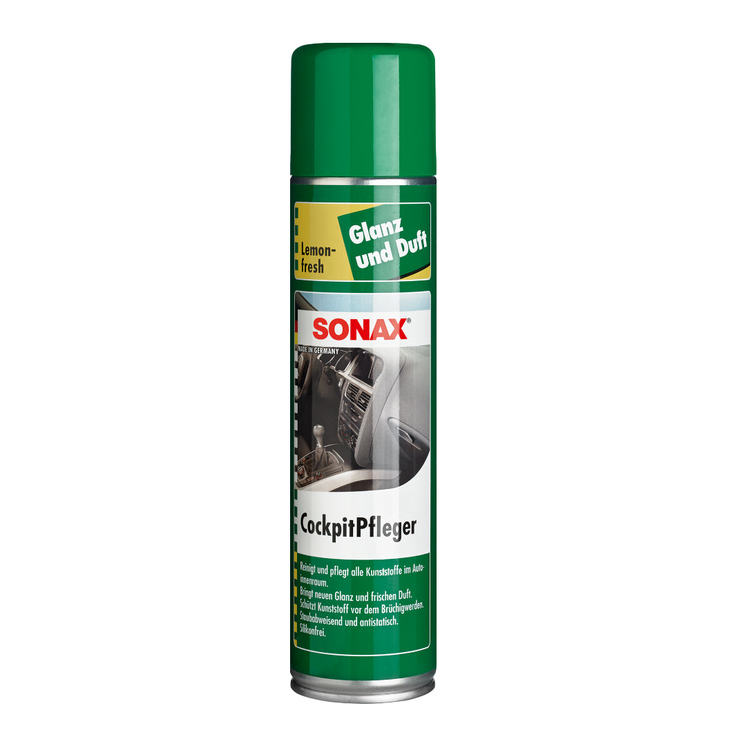 The classic: cleans and cares for all plastic parts in the car. Brings new shine to the cockpit. It has a dust-repellent, anti-static effect and protects plastic from becoming brittle. SONAX Cockpit Care is also suitable for wooden fittings. Silicone free.