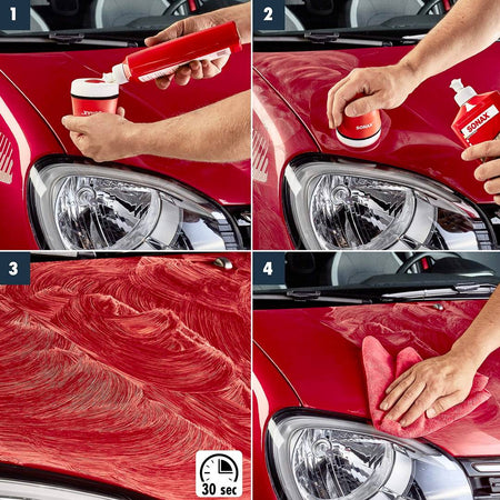 Brings a mirror-shine to all metallic paints. Cleans, polishes and gently seals the paintwork, while eradicating the finest rough spots. This product was developed especially for metallic paints. High quality natural waxes - like Carnauba wax - provide long-term protection against weathering effects.