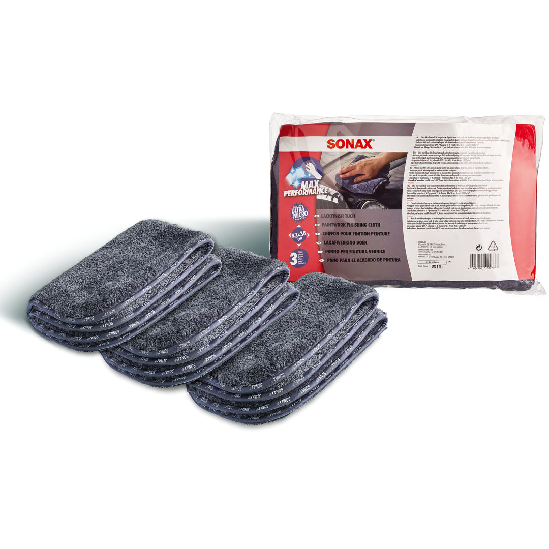 Professional microfiber cloth with high pile for a perfect paint care result without residues and wipe scratches, even for very sensitive surfaces. Ideal for finishing paint sealing. Gentle on paint thanks to sewn satin edge. Set of 3 in a plastic bag.