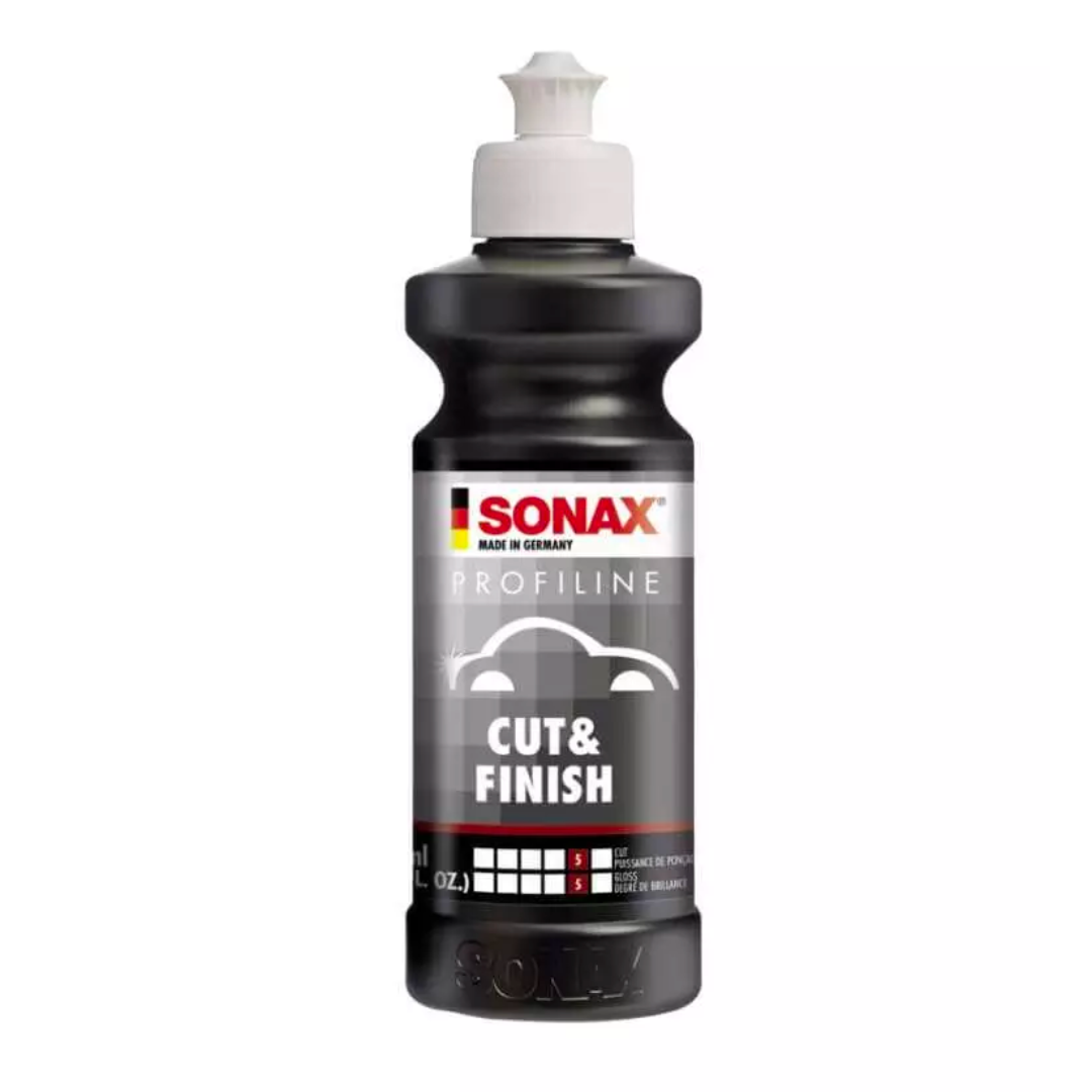 SONAX Cut & Finish is an innovative polish with an intense abrasive effect for quickly eradicating defective spots, such as dust occlusion, paint overspray and sanding marks following repair spraying. High abrasion with simultaneous good degree of shine, workable for a long time, with outstanding wipe off feature. Ideal for polishing sanded down surfaces. Removes sanding grooves made by P1500 abrasive paper. Silicone-free.