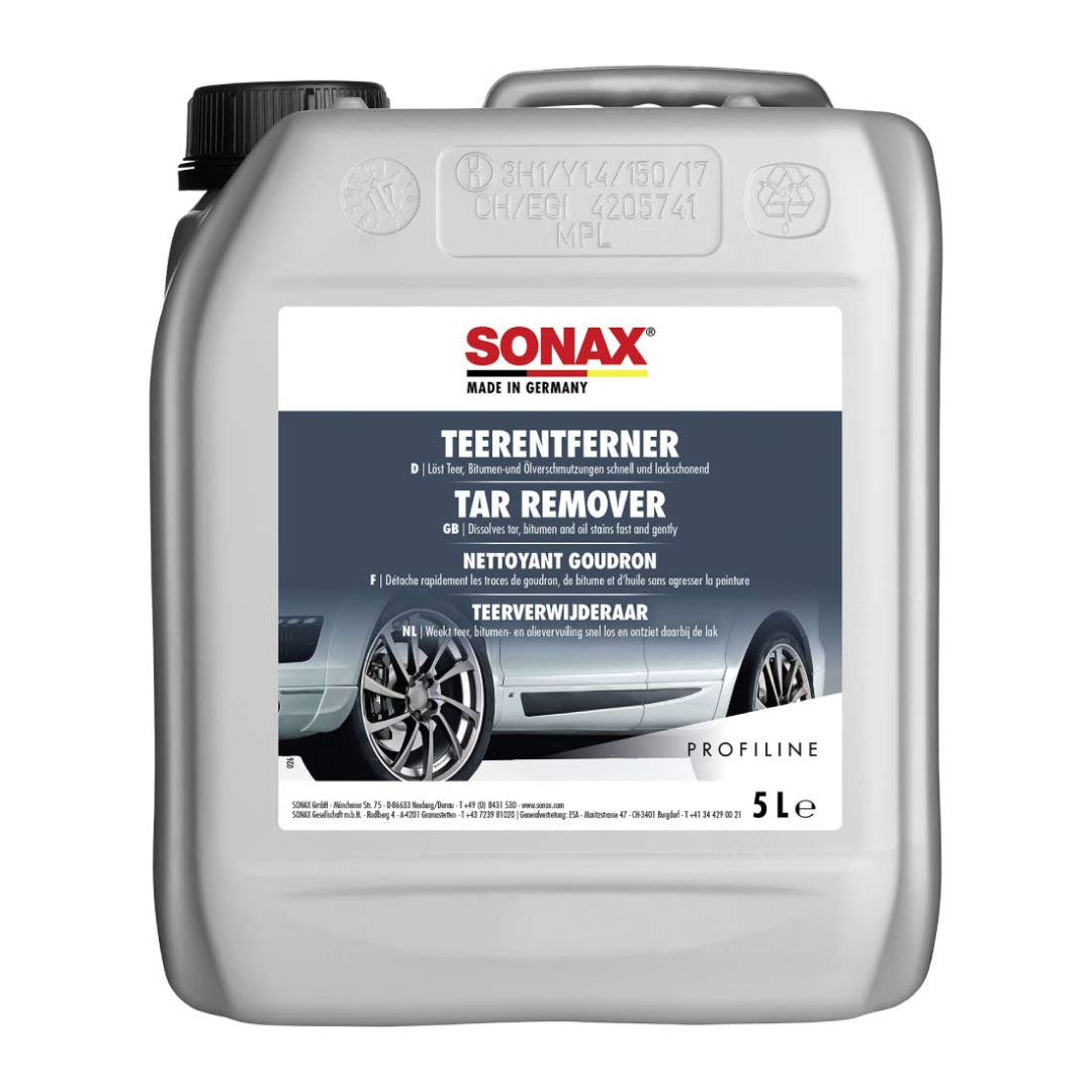 Sonax ProfiLine Tar Remover 5L is a powerful professional cleaner designed to quickly and safely remove stubborn tar, bitumen, asphalt, oil, and road grime from vehicle surfaces. Its advanced solvent-based formula works fast without damaging paintwork, glass, chrome, plastics, or headlights. Ideal for use in detailing centers and workshops, it restores a clean, smooth finish and prepares the surface for polishing or protection. Suitable for cars, trucks, and commercial vehicles, this large 5-liter pack is perfect for frequent professional use.
