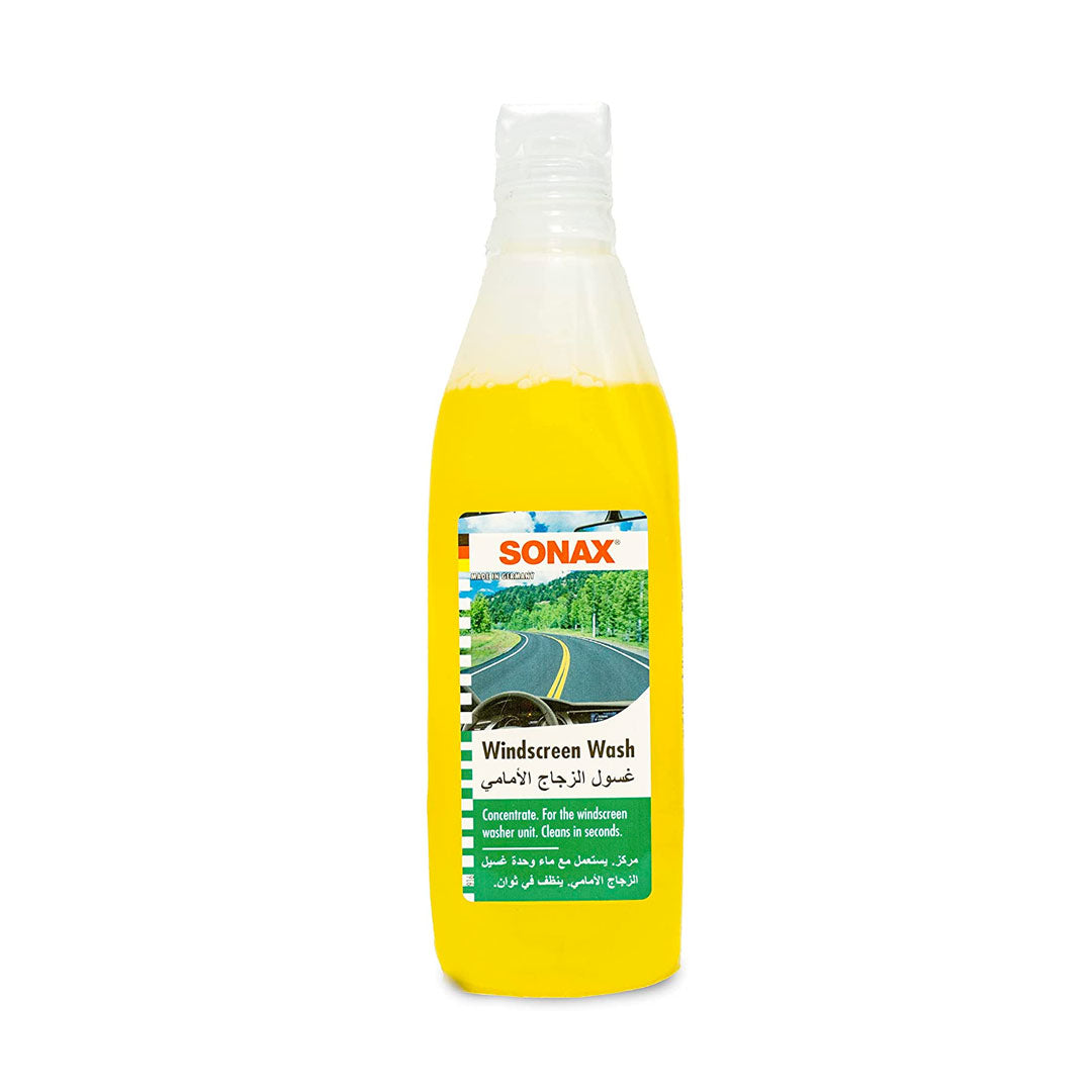 SONAX Windscreen Wash Concentrate - Lemon is a summer cleaning concentrate for the windscreen washer unit. The 250ml concentrate gives 2.5 litres of cleaning fluid.