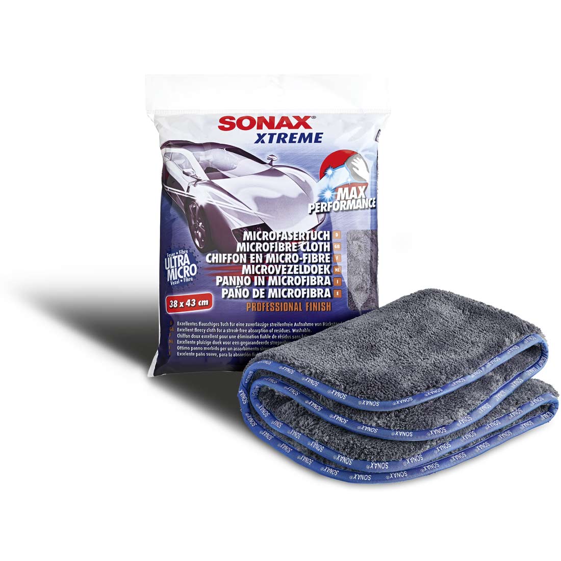 Fluffy professional cloth in ultra microfibre quality with extra high pile for streak-free and scratch-free absorption of residues of all types (e.g. wax and polish residues, dirt, etc.). Also ideal for finishing after applying paint seals. Material composition: 69% polyester, 31% polyamide. Particularly gentle on paint thanks to the stitched satin edge, extra durable due to the high weight (1300g/m2) and extremely large liquid absorption thanks to the high polyamide content. Sonax car care products Made in Germany it shines what moves us.