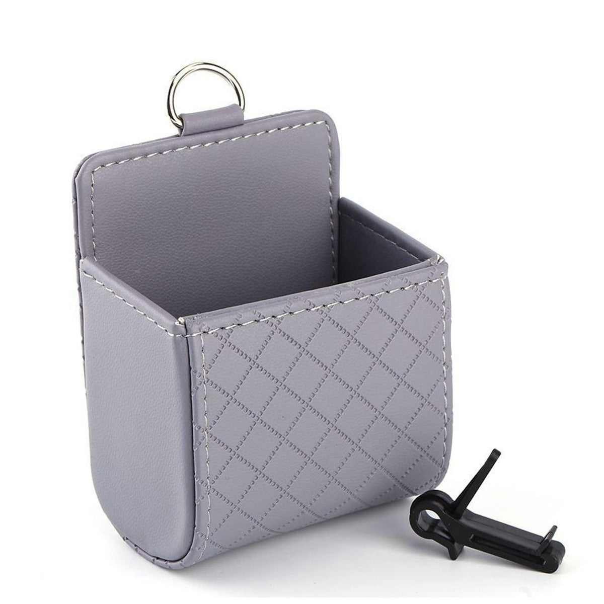 The product is made of fine PU material, with fine workmanship, wear resistant, cold-resistant and anti-aging. Vehicle storage bucket mobile phone rack debris bag is small size, which don't take space, and easy to store and carry. Small but functional, can hold your cigarettes case, glasses, pens etc. Easy to install, doesn't need any tools to install, just hang on the car air outlet, really convenient. The fixed hook is suitable for most of the car vent structure, and it will not fall off easily after this car organizer is installed. The storage box will keep your car tidy and clean and make you easy to find your small things ever.