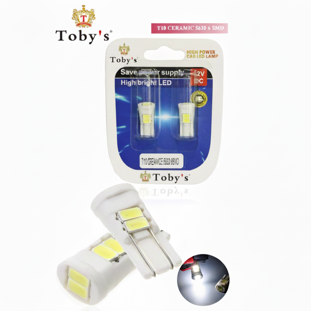 The Toby’s T10 Ceramic S630 6 SMD LED is a high-durability miniature bulb designed for vehicles that require superior heat management in small spaces. Built with a specialized ceramic body, this bulb is engineered to withstand higher temperatures than standard plastic LEDs, preventing melting and ensuring a longer lifespan. Equipped with 6 powerful 5630 (S630) SMD chips, it produces a vibrant 6000K white light that is significantly brighter than factory halogen bulbs. Its universal T10/W5W fit makes it a perfect choice for license plate lamps, parking lights, and interior dome lighting, offering an eco-friendly 2W power consumption that protects your car’s battery.