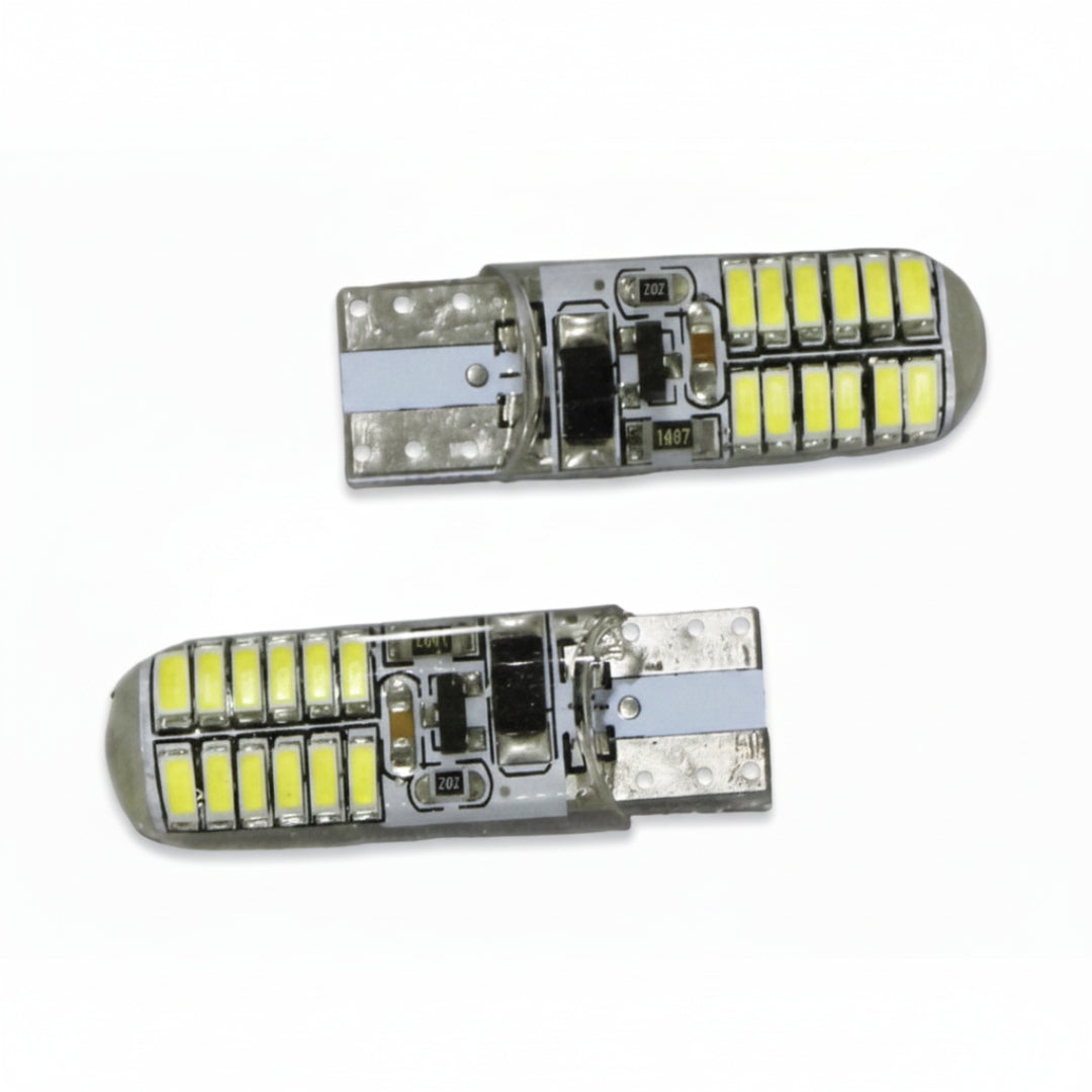 The Toby’s T10 PCB Indicator Lamp is a unique, high-performance LED bulb that features a dual-mode function for both standard and emergency lighting. Equipped with 24 high-intensity 3014 SMD LEDs, this bulb provides a powerful 360-degree beam that can switch between Constant Shine (standard lighting) and Strobe/Flash Mode (for urgent signaling or custom style). The advanced PCB design and silica-sealed LEDs ensure efficient heat management and a 10,000K ultra-white color temperature that stands out in any application. Whether used for interior dome lights or exterior side signals, this 12V bulb is a durable, multi-functional upgrade that adds both safety and a modern aesthetic to your vehicle.