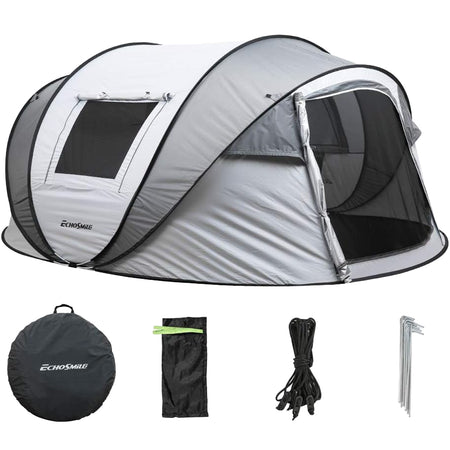 This instant pop-up tent is designed to be fully erected in just four seconds, providing a hassle-free setup for outdoor activities like camping, hiking, or beach use. It features two large mesh doors and two mesh windows for optimal cross-ventilation, and the waterproof 190TPU coating offers protection from rain and sun.