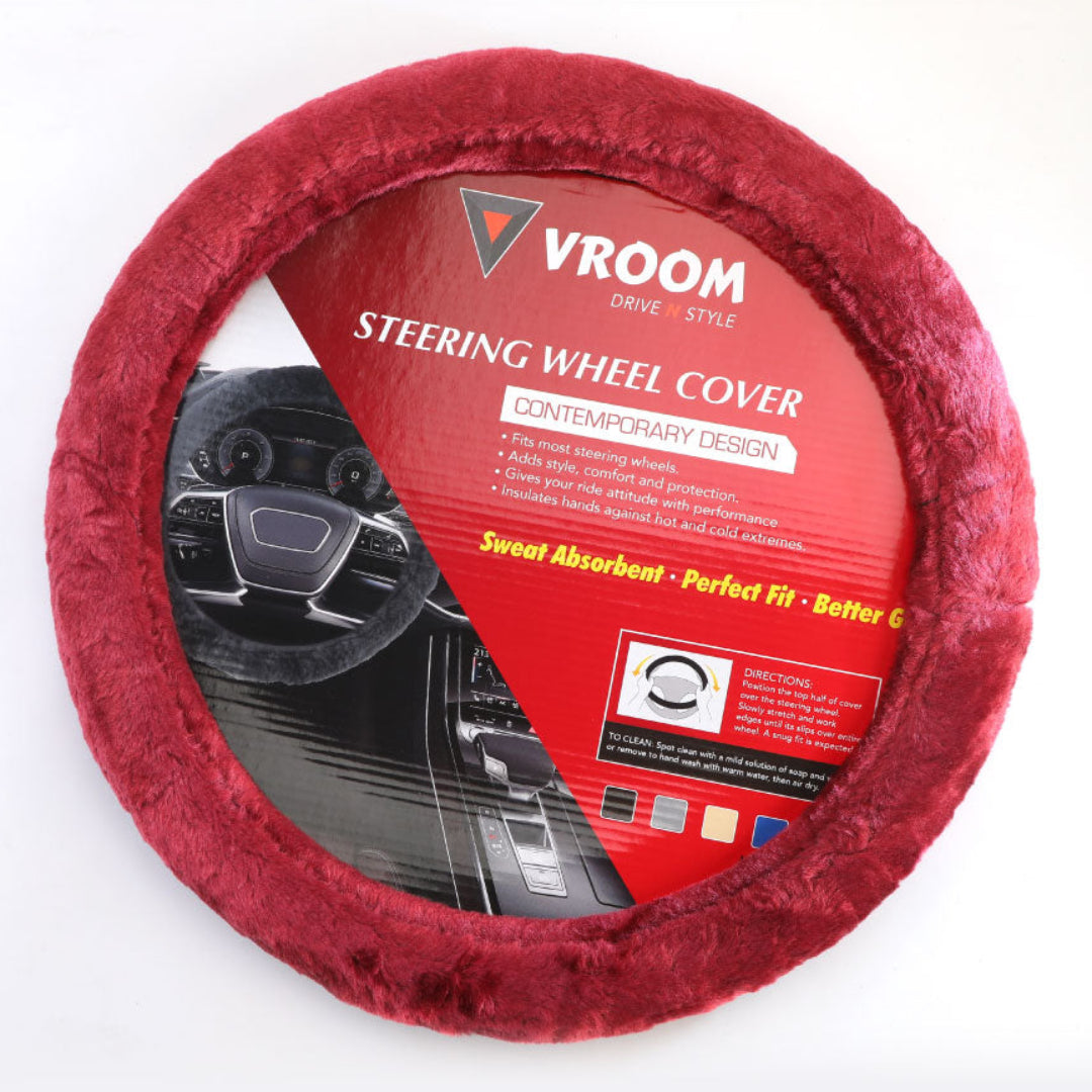 Steering Wheel Cover Contemporary Design Fits most steering wheels. Adds style, comfort and protection. Gives your ride attitude with performance. Insulates hands against hot and cold extreme Sweat Absorbent. Perfect Fit Better Grip.